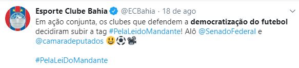 Os manifestos dos clubes, fossem os das Séries A e B ou da Liga do Nordeste usam “democratização da transmissão do futebol”, mas, numa rápida busca, além da faixa da Arena da Baixada, pelo menos Flamengo, Bahia e Athletico utilizaram “democratização do futebol”. Temos neste recorte três modelos distintos de democracia interna e de como a democracia, de forma geral, é entendida.